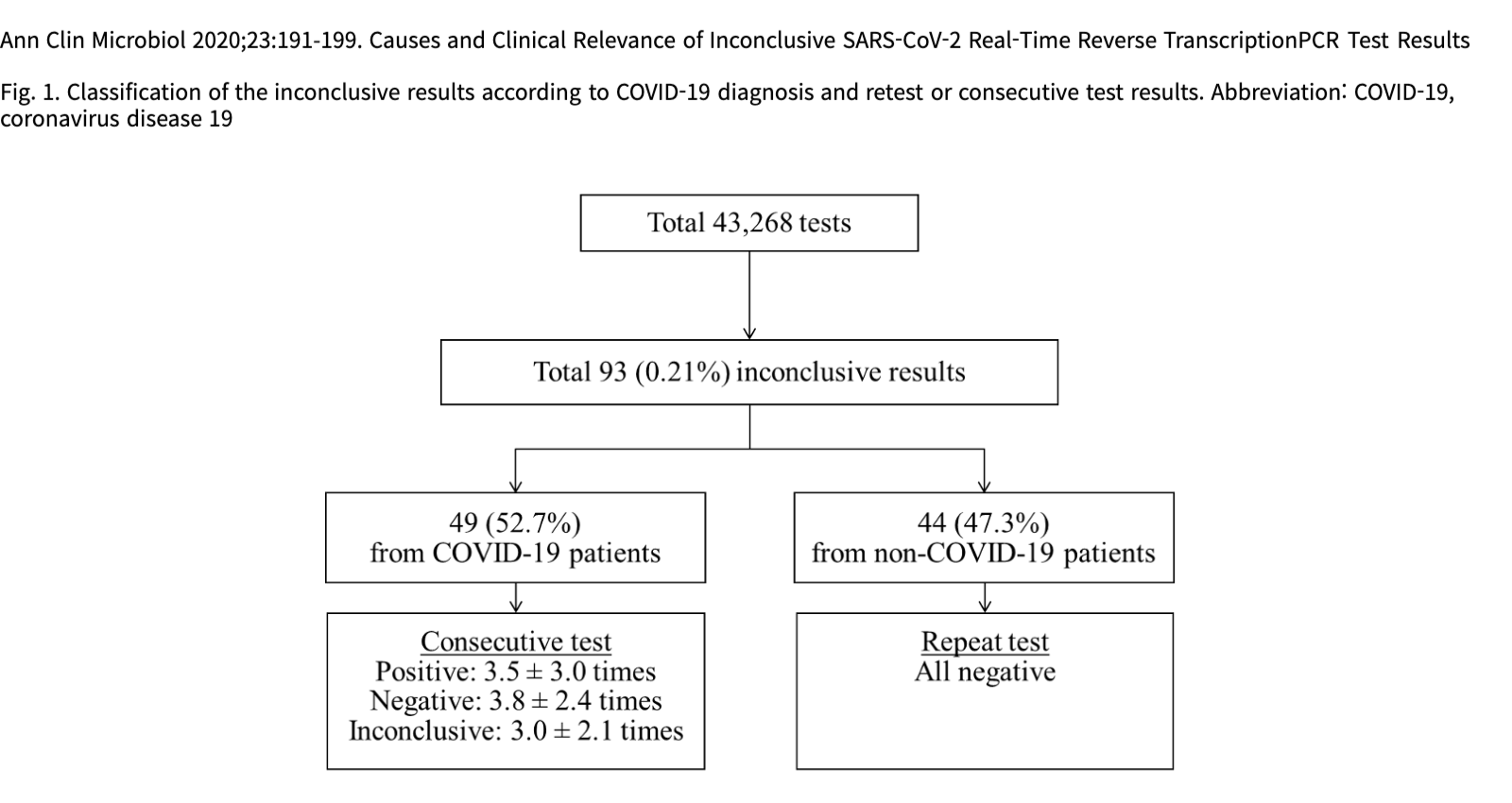 Ann Clin Microbiol 2020;23:191-199. Causes and Clinical Relevance of Inconclusive SARS-CoV-2 Real-Time Reverse TranscriptionPCR Test Results