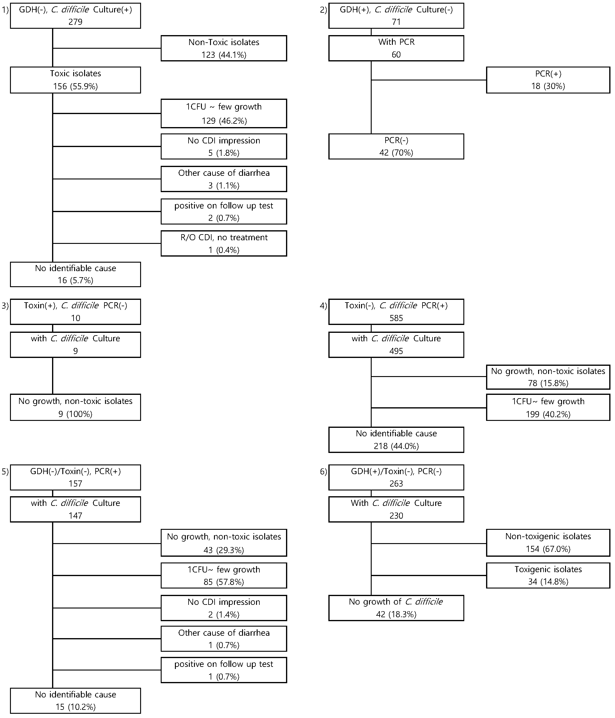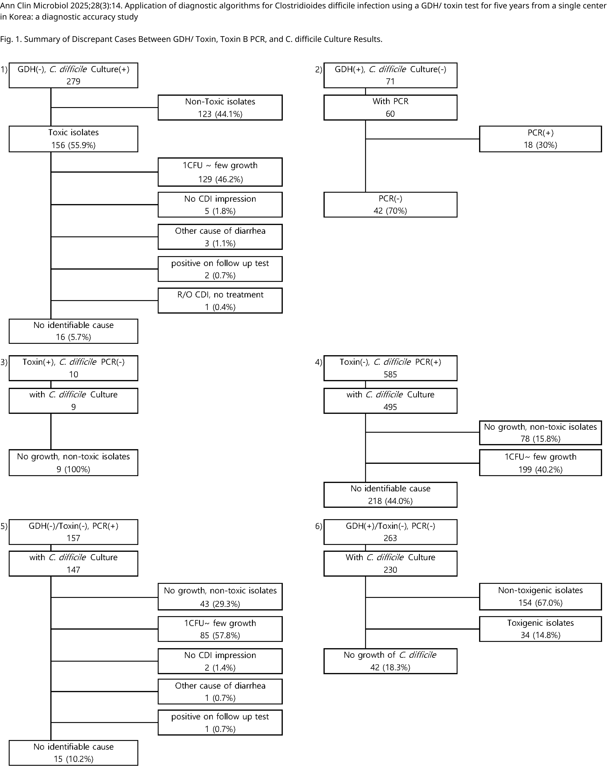 Ann Clin Microbiol 2025;28(3):14. Application of diagnostic algorithms for Clostridioides difficile infection using a GDH/ toxin test for five years from a single center in Korea: a diagnostic accuracy study