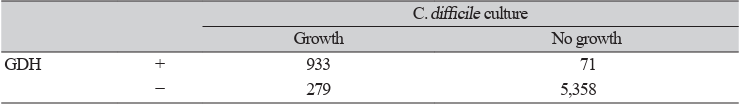 Table 1. Comparison between GDH test and C. difficile culture (N = 6,641)