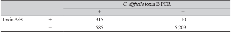 6. Kato H, Kato N, Watanabe K, Iwai N, Nakamura H, Yamamoto T, et al. Identification of toxin A-negative, toxin B-positive Clostridium difficile by PCR. J Clin Microbiol 1998;36:2178-82.