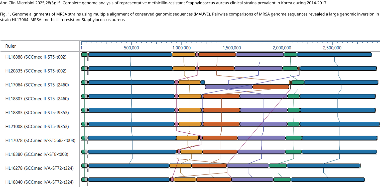 Ann Clin Microbiol 2025;28(3):15. Complete genome analysis of representative methicillin-resistant Staphylococcus aureus clinical strains prevalent in Korea during 2014-2017