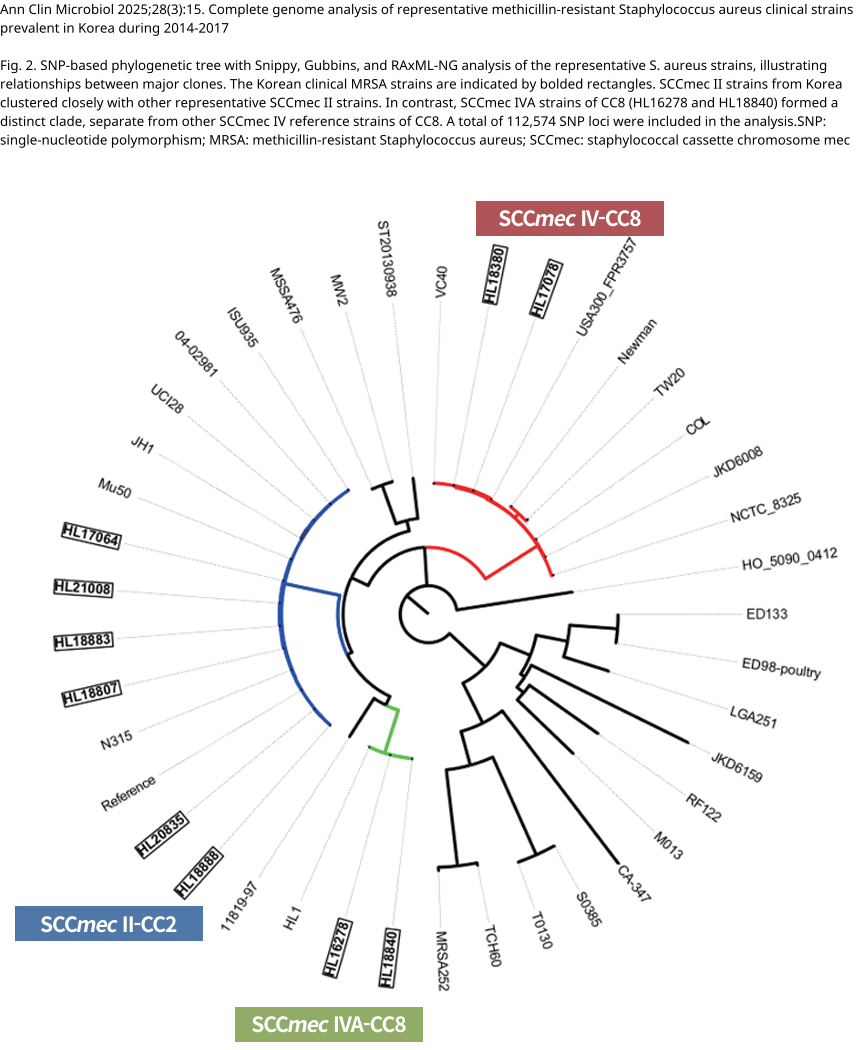 Ann Clin Microbiol 2025;28(3):15. Complete genome analysis of representative methicillin-resistant Staphylococcus aureus clinical strains prevalent in Korea during 2014-2017