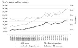 Original article PDF Jeong-Hun Kim, Jin-Tae Suh, Myung-Hee Kim, Gee-Young Kim, Sun-Ryung Her, Hee-Joo Lee, Woo-In Lee, So-Young Kang Department of Laboratory Medicine, Kyung Hee University, College of Medicine, Seoul, Korea Corresponding to Jin-Tae Suh, E-mail: Suhjt@hitel.net Ann Clin Microbiol 2004;7(2):182-185.Copyright © Korean Society of Clinical Microbiology. Abstract Background : Tuberculosis is still one of the most seriously threatening infections in Korea, because of multidrug resistant tuberculosis. Results of antituberculosis drug susceptibility test can provide clinicians very important informations for selection of proper regimens for treatment. Methods : In this study the results of antituberculosis drug susceptibility test of 298 cases at Kyunghee Medical Center from 2000 to 2003 were retrospectively analysed to evaluate the trend of antituberculosis drug susceptibility. The procedure of drug susceptibility test was based on the absolute concentration method using Lowenstein-Jensen solid media. Results : The resistance rate of Mycobacterium tuberculosis to one or more drugs was increased